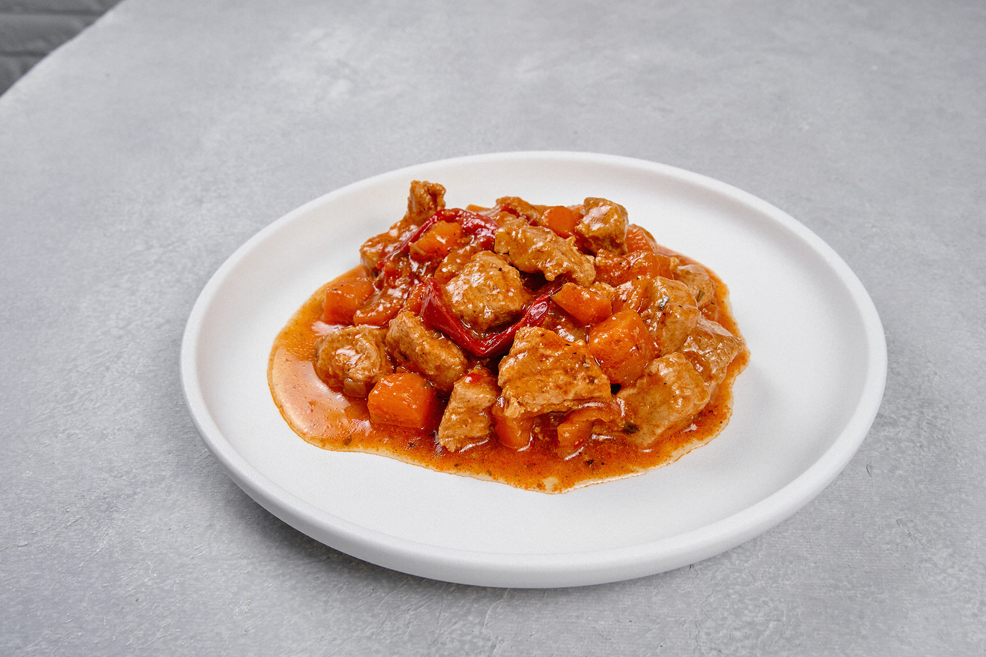 Нежные кусочки свинины, обжаренные с луком и сладким перцем. Яркий аромат и сбалансированный вкус делают блюдо по-настоящему аппетитным.