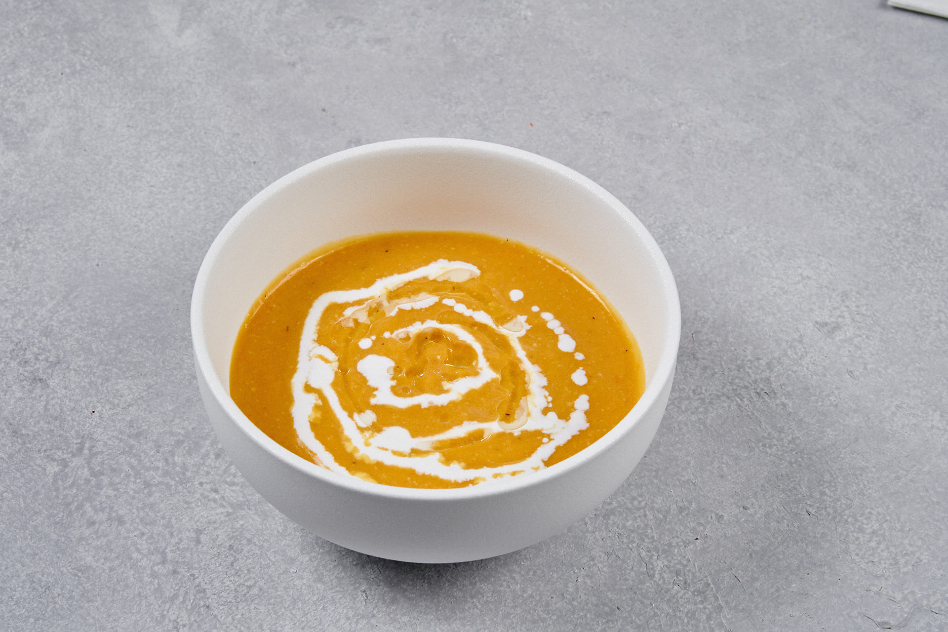 Тёплый крем-суп из тыквы с молоком и сливками. Нежная текстура, лёгкий аромат чеснока и овощей создают по-домашнему вкусное и сытное блюдо. Состав: Тыква свежая, лук репчатый, морковь, молоко, сливки 16%, соль, чеснок свежий, перец черный молотый.