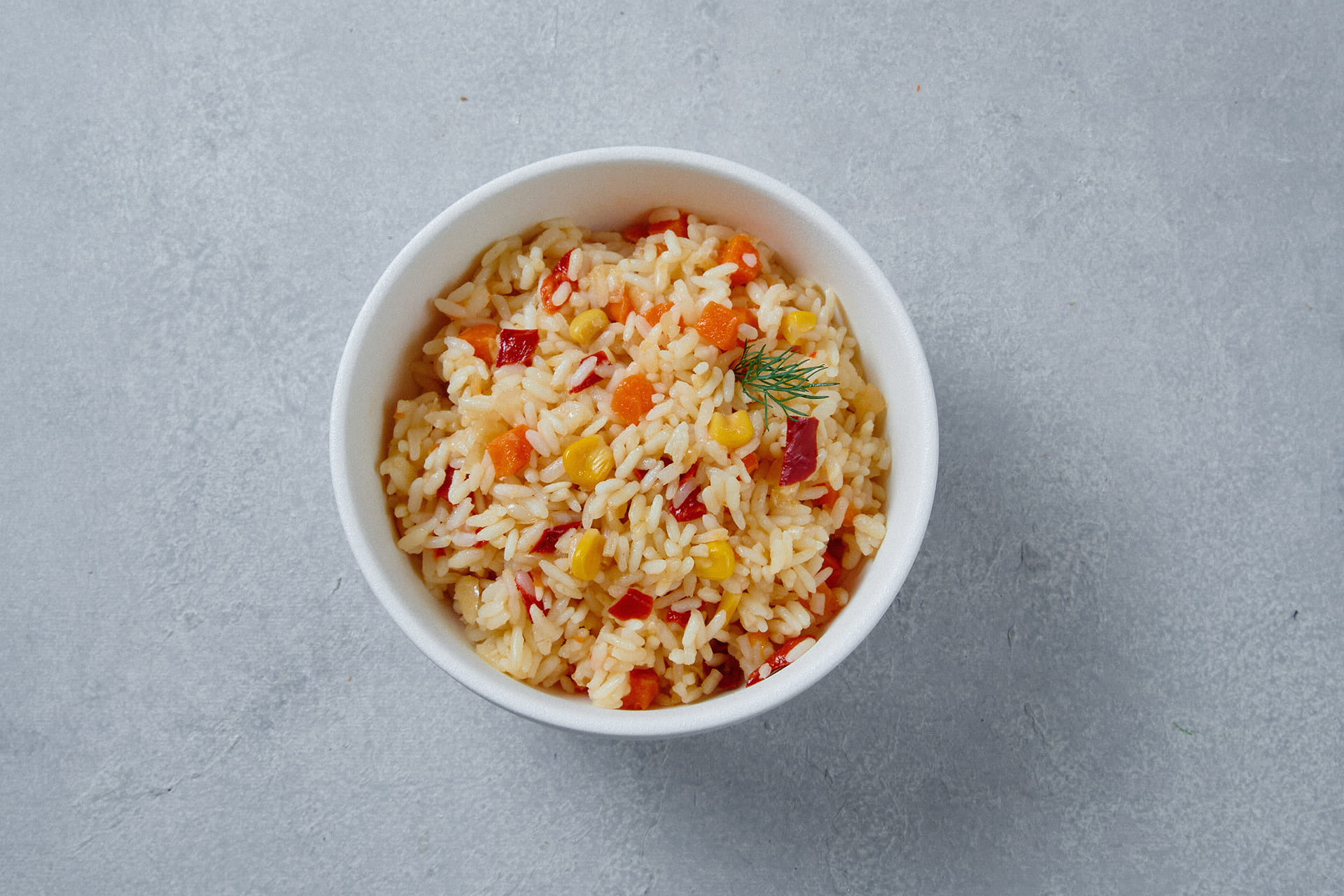 Состав: рис, вода, лук репчатый, морковь, перец сладкий, кукуруза консервированная, масло растительное, чеснок, соль.