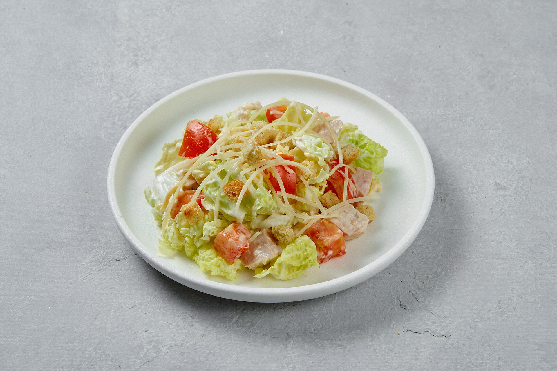 Состав: салат китайский, мясо куриное, помидоры, сырный продукт, сухарики к салату, майонез, масло растительное, чеснок свежий, сахар, соль