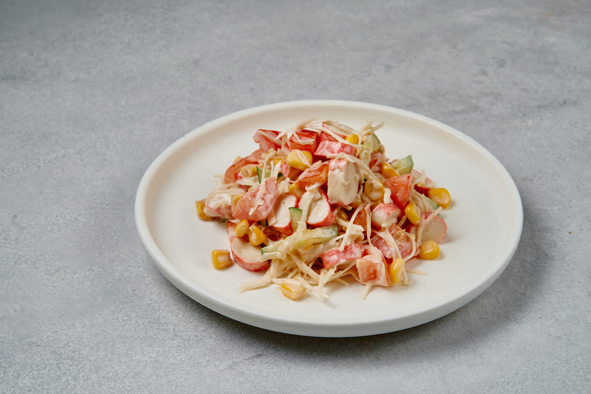 Состав: помидоры свежие, крабовые палочки, кукуруза консервированная, капуста белокочанная, огурцы свежие, майонез, соус терияки, соус устричный.