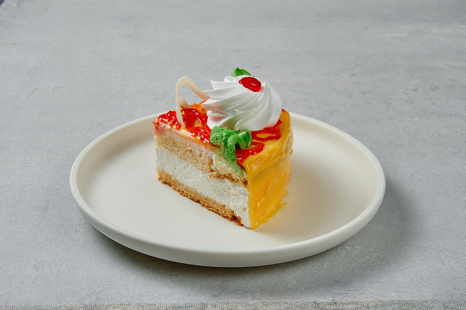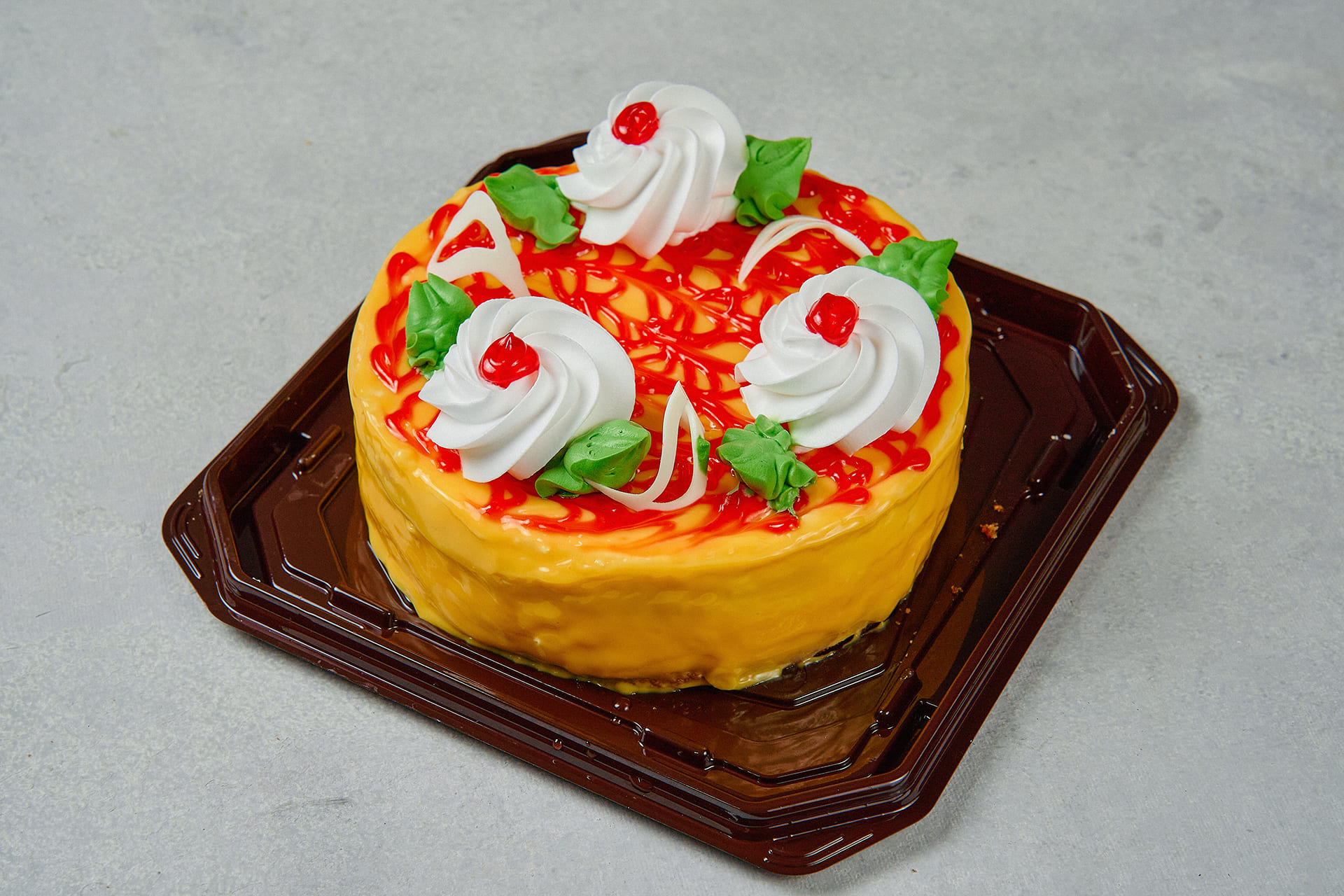 Нежный творожно-сливочный десерт с кусочками фруктов. Лёгкий, ароматный и сбалансированный по вкусу — идеален к чаю или кофе. Состав: творог, гель кондитерская, мука пшеничная в/с, яйцо, сахарный-песок, сливки, маргарин, персики консервированные, желатин, разрыхлитель, ванилин, коньяк, сорбиновая кислота.
